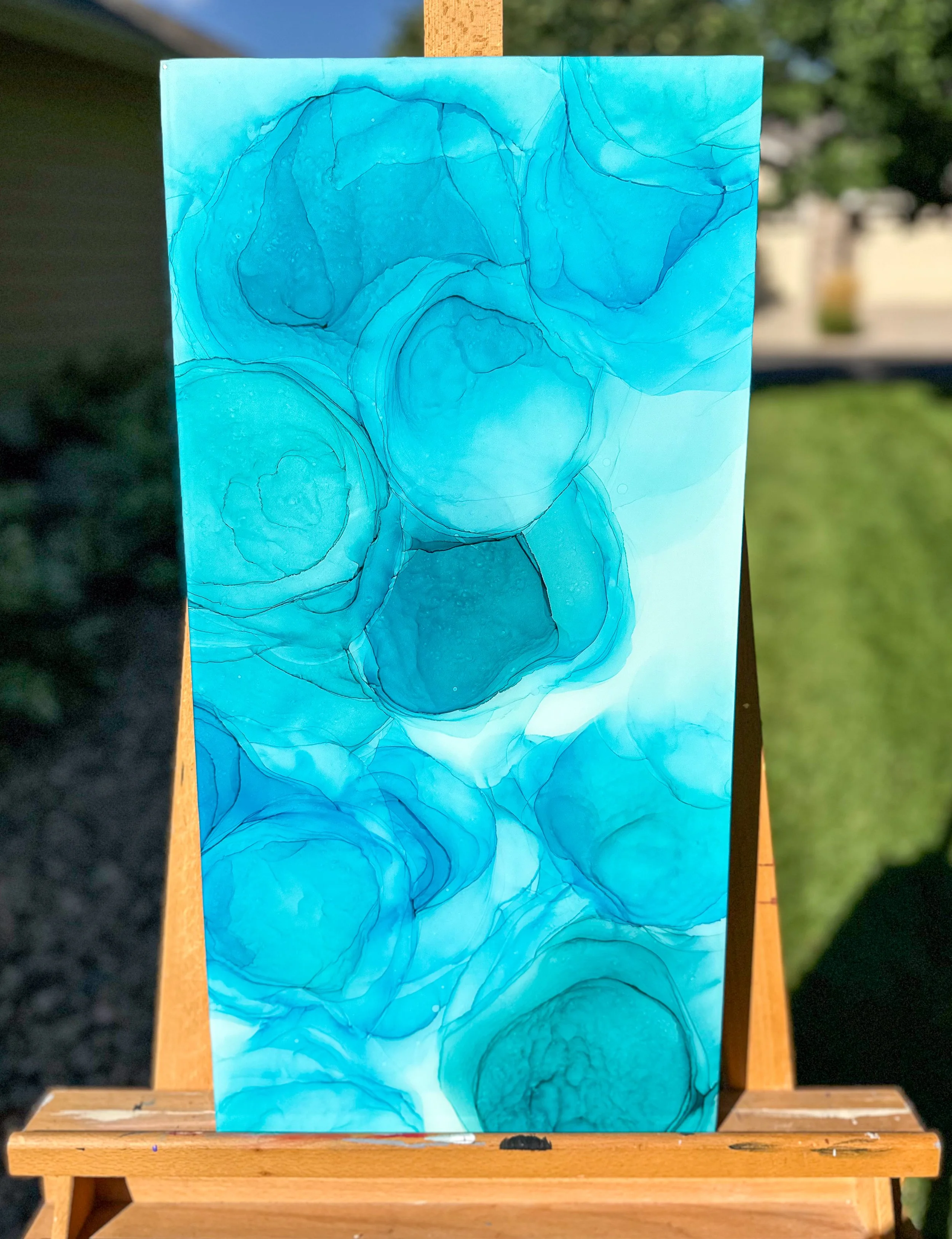 Shop › Glacial Calving Image 1 of 5 Image 2 of 5 Image 3 of 5 Image 4 of 5 Image 5 of 5 Glacial Calving $150.00 Size: 12” x 24”Alcohol ink on YUPO paper, mounted to cradled birch wood, sealed with epoxy resin. Add To Cart Added! Size: 12” x 24”Alcohol ink on YUPO paper, mounted to cradled birch wood, sealed with epoxy resin.